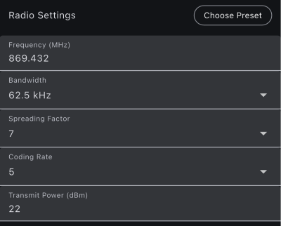Frekvence: 869,432 MHz – v EU je to jediná frekvence, která nabízí velkorysý 10% pracovní cyklus a až 27 dBm efektivního izotropního vyzářeného výkonu (EIRP).