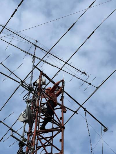 Mnoho strastí provázelo tento repeater, dokud nepřijela návštěva Advert Police v podobě uklízečky z RedHat Czech a přivezla výložník díky kterému už nemusela být anténa Meshcore stíněna talířem Wok…. Uklízečka - respektive konstábl Advert Police - byl ovšem po svém návratu do rodného Jižnomoravstánu jiným talířem za svůj výlet do Zlína potrestán. Čest jeho památce.